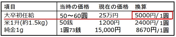 さらに、これを今の円の価値で見るために、貨幣価値の換算をします。