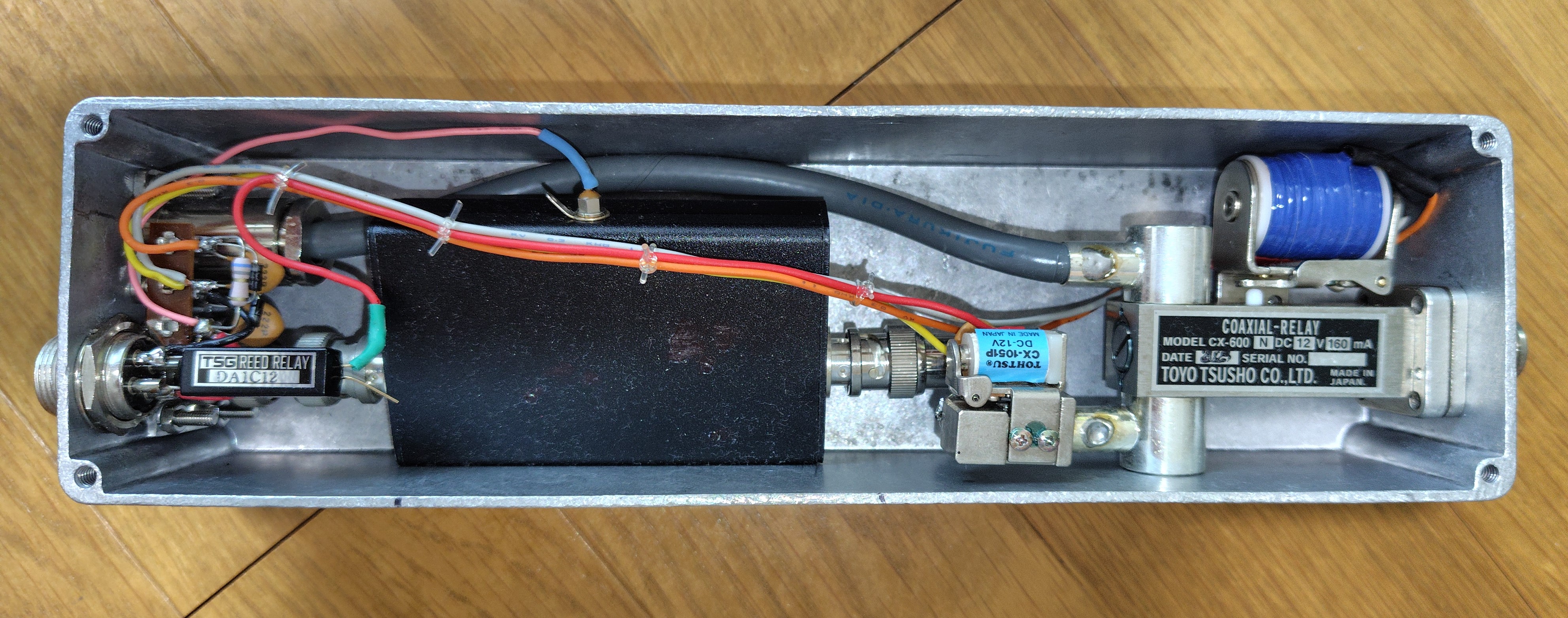 右の写真の手前:2つ目の同軸リレー CX-1051Pは、CX-600NCにつけた同軸ケーブルに直接つけてしまいました。