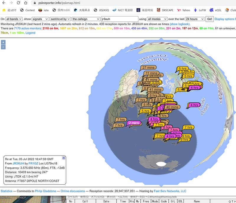50メガの春のコンディションが絶好調です。夕方と夜遅い時間;12時過ぎてもどっかが入っていたりします。 今日も、夕方、ヨーロッパとアフリカで同時に波を受けてくれていました。